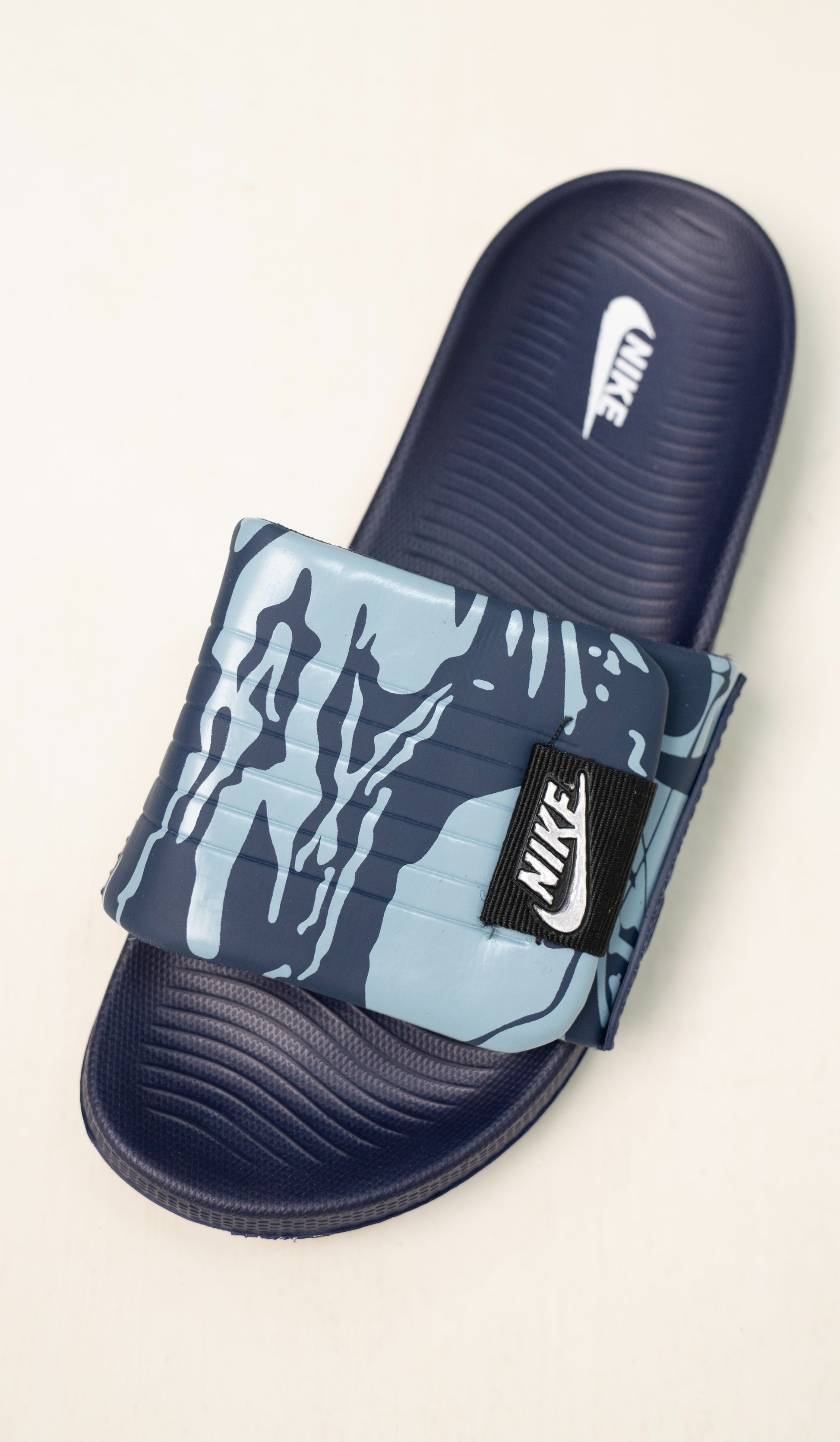 Make a bold statement with these Nike Blue Camo Comfort Slides, designed for everyday performance and effortless street style. Featuring a striking monochrome camouflage strap, these slides combine modern design with superior comfort for daily wear.
